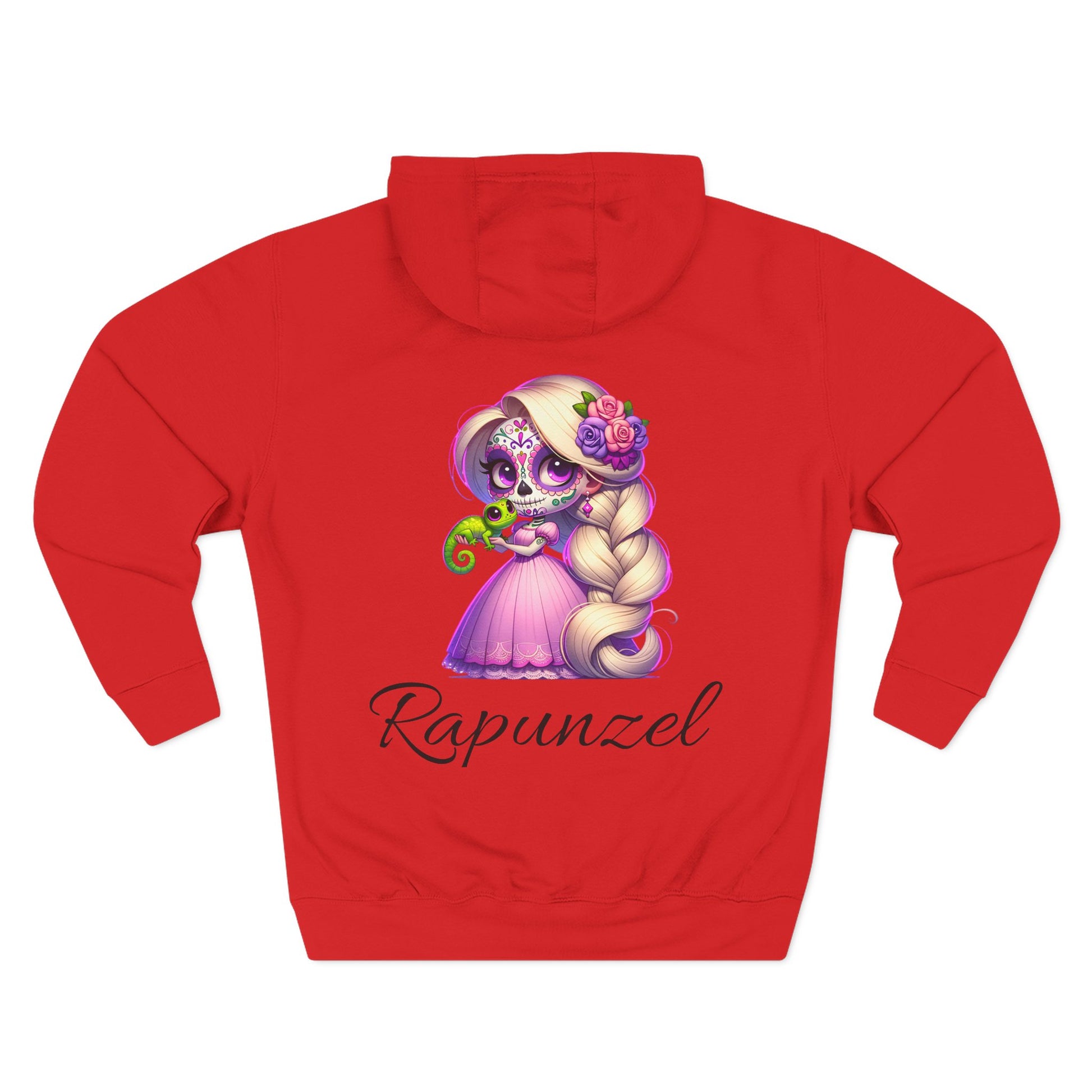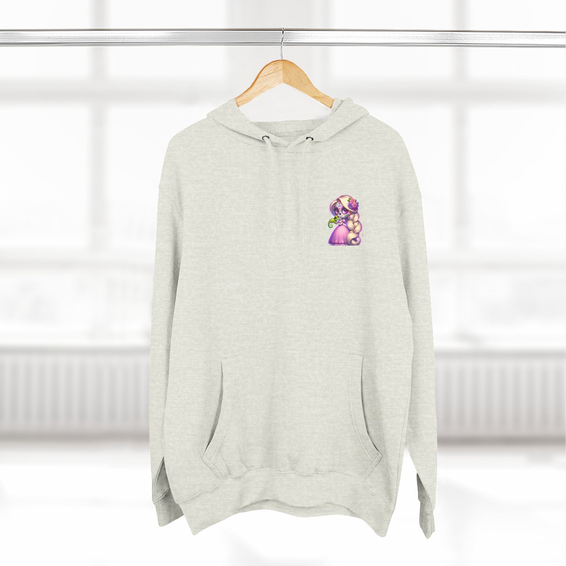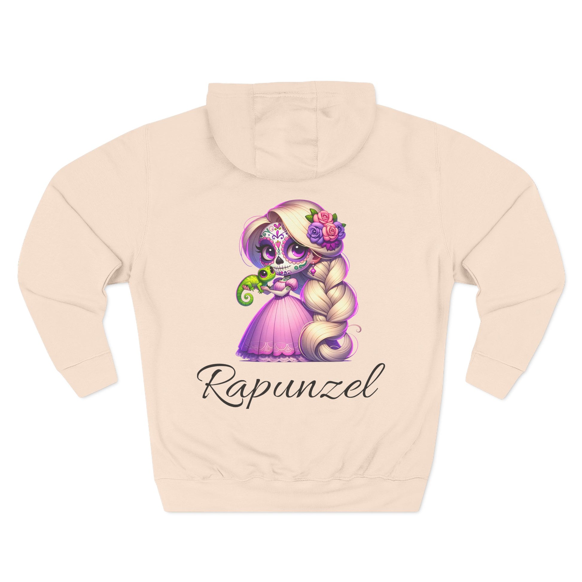 This cozy hoodie brings a storybook moment into everyday wear. Soft, medium-heavy fleece wraps you like a warm hug while a delicate Rapunzel illustration adds a touch of whimsical charm. The artwork sits small on the front chest and unfolds larger across the back, turning the hoodie into a wearable scene — a gentle nod to fairytale lovers who like subtle front details and a more expressive back. Thoughtful details like an adjustable hood, roomy kangaroo pocket, and durable double-needle stitching make it comfortable for long days of strolling through markets, reading in cafés, or lounging at home. The fabric’s soft hand-feel and stable necktape keep it feeling premium wash after wash, while the option for embroidered placement gives it a handcrafted touch. Product features - Soft medium-heavy 8.25 oz fleece with a luxurious hand-feel - Roomy kangaroo pouch pocket to warm hands and hold essentials - Adjustable hood with self-colored drawstrings and metal grommets - Durable construction: double-needle topstitching, twill necktape, under 5% shrinkage - Embroidery option for left or center chest; exterior cotton surface suited for printing Care instructions - Machine wash: cold (max 30C or 90F) - Do not bleach - Tumble dry: low heat - Iron, steam or dry: low heat - Do not dryclean