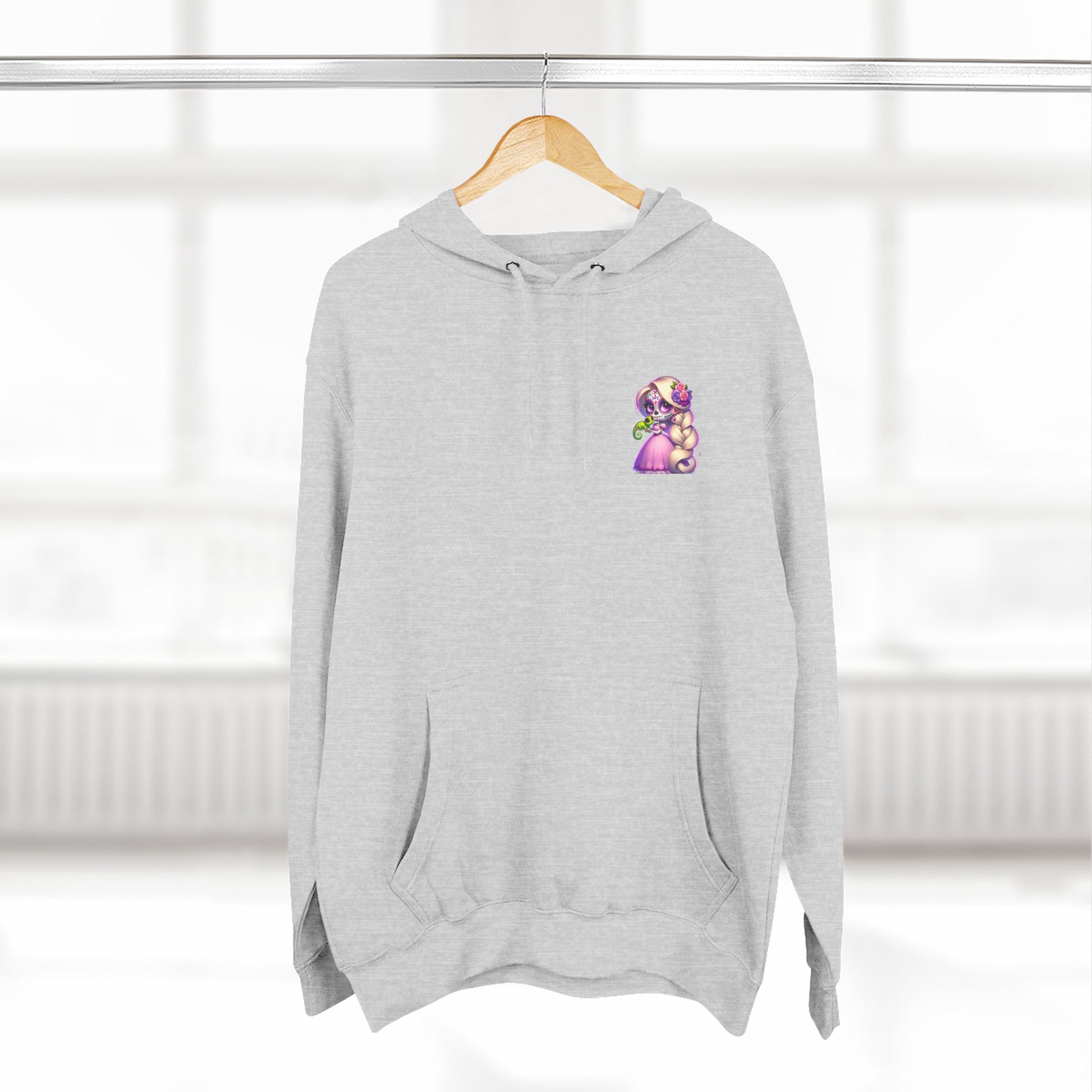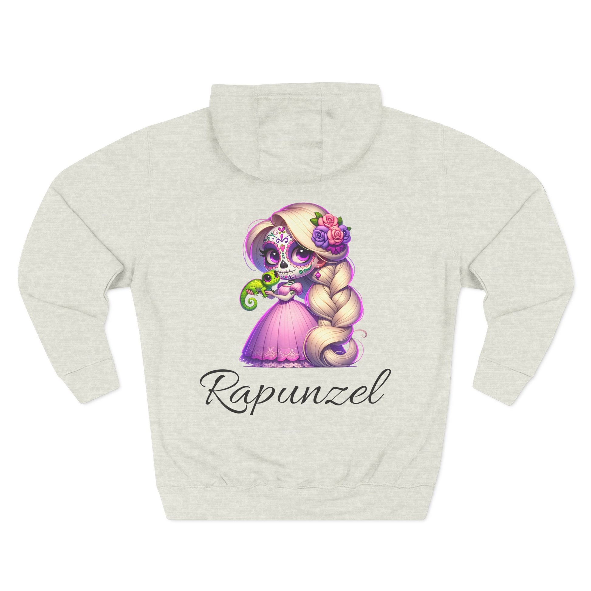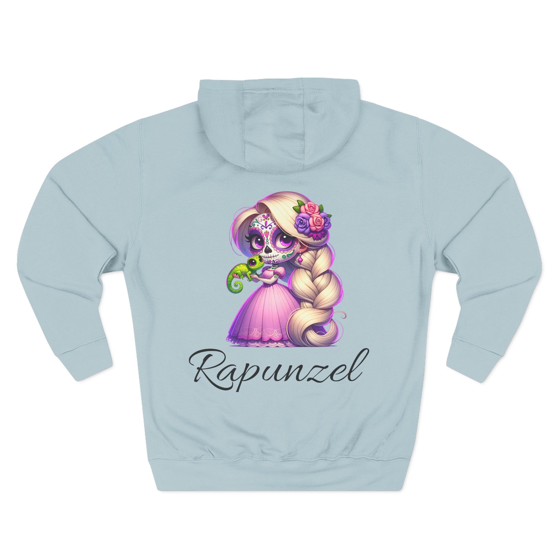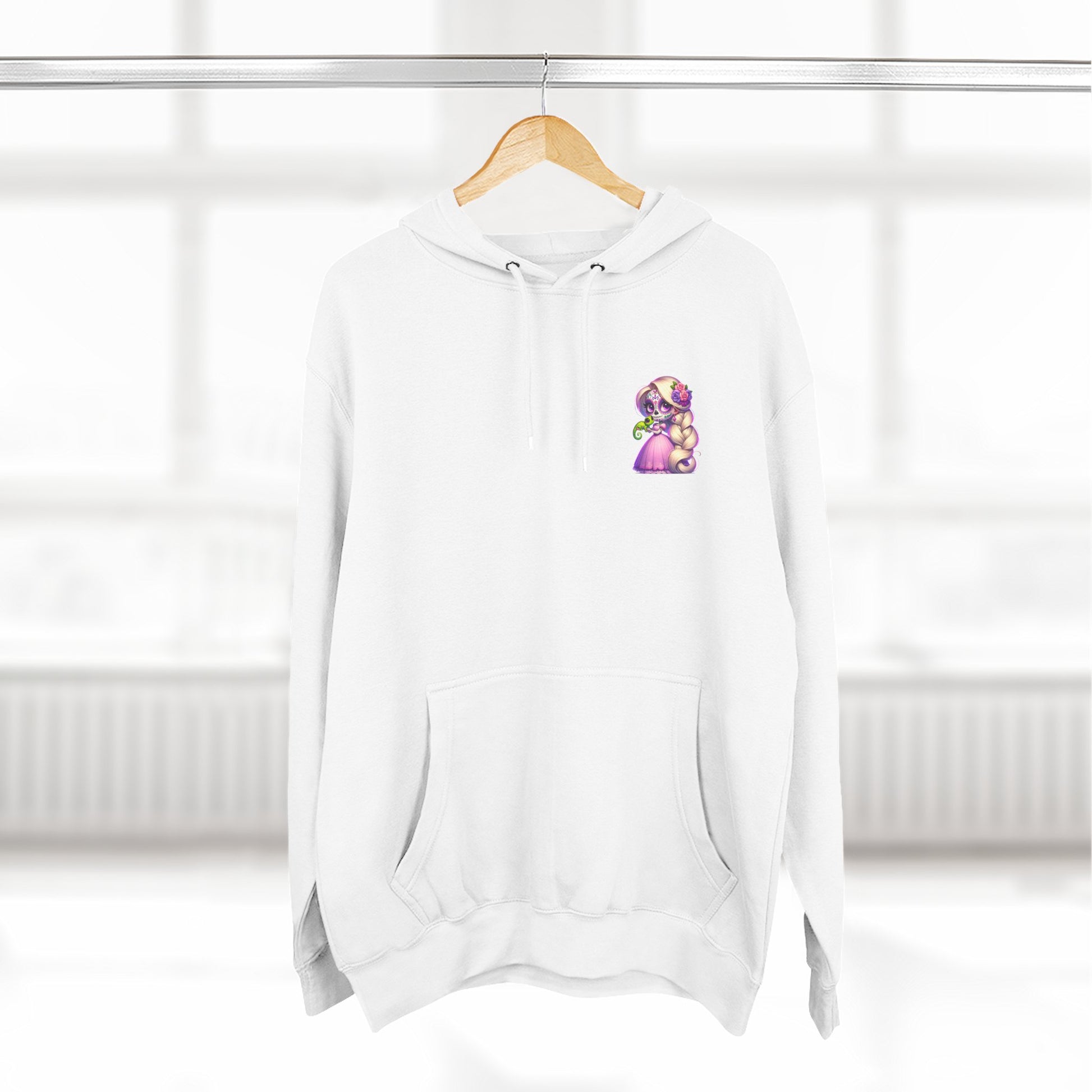 This cozy hoodie brings a storybook moment into everyday wear. Soft, medium-heavy fleece wraps you like a warm hug while a delicate Rapunzel illustration adds a touch of whimsical charm. The artwork sits small on the front chest and unfolds larger across the back, turning the hoodie into a wearable scene — a gentle nod to fairytale lovers who like subtle front details and a more expressive back. Thoughtful details like an adjustable hood, roomy kangaroo pocket, and durable double-needle stitching make it comfortable for long days of strolling through markets, reading in cafés, or lounging at home. The fabric’s soft hand-feel and stable necktape keep it feeling premium wash after wash, while the option for embroidered placement gives it a handcrafted touch. Product features - Soft medium-heavy 8.25 oz fleece with a luxurious hand-feel - Roomy kangaroo pouch pocket to warm hands and hold essentials - Adjustable hood with self-colored drawstrings and metal grommets - Durable construction: double-needle topstitching, twill necktape, under 5% shrinkage - Embroidery option for left or center chest; exterior cotton surface suited for printing Care instructions - Machine wash: cold (max 30C or 90F) - Do not bleach - Tumble dry: low heat - Iron, steam or dry: low heat - Do not dryclean